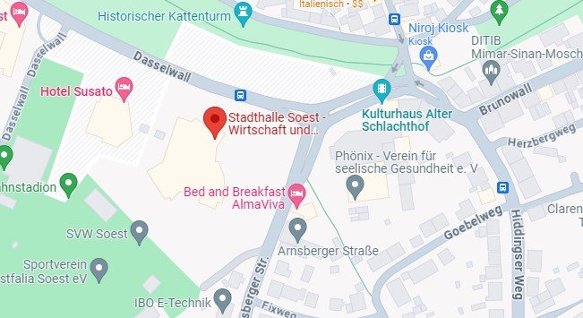 Unsere Busreisen ab Soest starten an der Stadthalle (Dasselwall 1) in 59494 Soest.