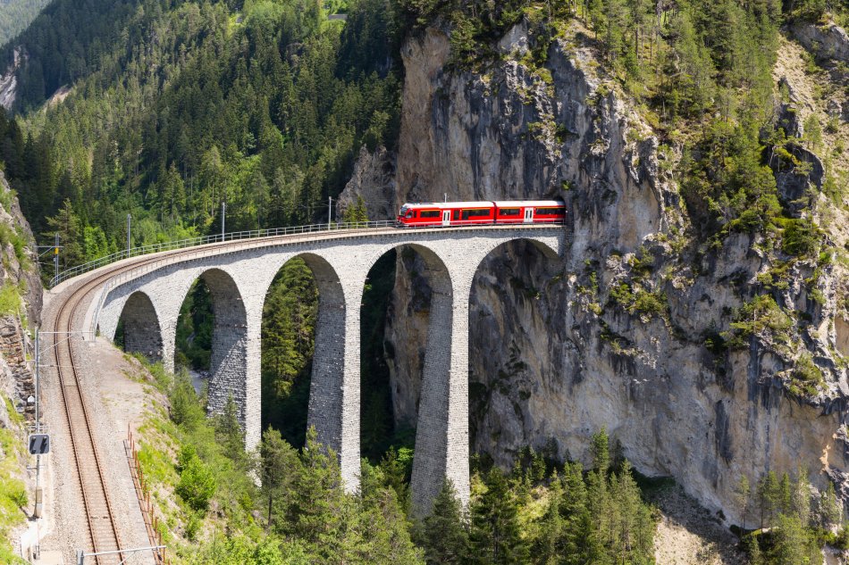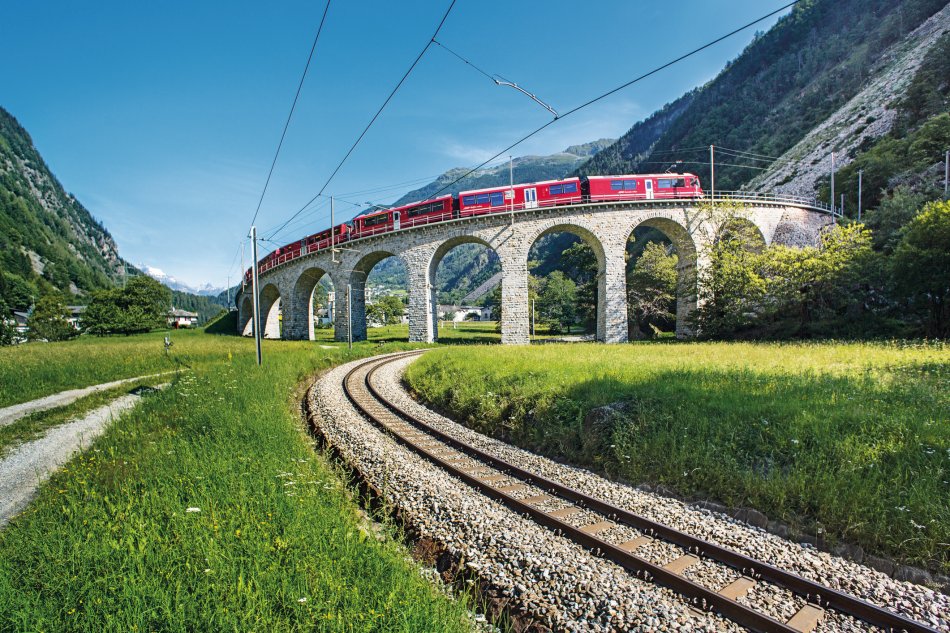 In Tiefencastel besteigen Sie heute den legendären Bernina-Express, der Sie auf eine der spektakulärsten Bahnstrecken der Welt führt. Die Fahrt über den 2.253 m hohen Bernina-Pass bietet atemberaubende Ausblicke auf schneebedeckte Gipfel, glitzernde Gletscher und alpine Seen. Vorbei geht es am berühmten Morteratsch-Gletscher sowie an den imposanten Gipfeln des Piz Bernina und Piz Palü, deren majestätische Präsenz die Alpenlandschaft unvergesslich macht. Beim Blick ins tieferliegende Valposchiavo weht Ihnen bereits die warme, mediterrane Bergluft Italiens entgegen. Über das architektonische Meisterwerk des Kreisviadukts erreichen Sie das malerische Städtchen Tirano. Nach einem kurzen Aufenthalt geht es bequem mit dem Bus zurück über den Berninapass nach St. Moritz, wo Sie Zeit haben, die weltbekannte Alpenstadt mit ihrem eleganten Flair und der glitzernden Seenlandschaft zu genießen