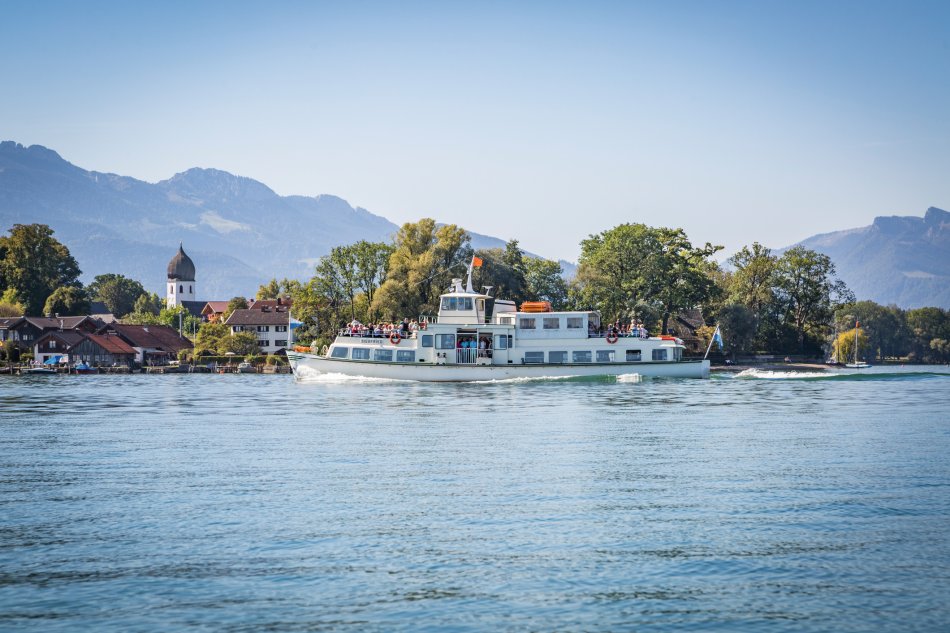 Nach einem ausgiebigen Frühstück starten Sie zu einem erlebnisreichen Ausflug auf dem malerischen Chiemsee. Mit dem Schiff gleiten Sie zunächst zur beeindruckenden Herreninsel, wo Sie das prachtvolle Schloss Herrenchiemsee besichtigen können – ein echtes Meisterwerk der Architektur, das Ludwig II. zu Ehren von Versailles errichten ließ. Anschließend geht es weiter zur idyllischen Fraueninsel, wo bereits Ihr Reiseführer auf Sie wartet. Er erzählt spannende Geschichten über die Geschichte der Insel und das Leben der Menschen hier. Danach bleibt noch genügend Zeit, die charmanten Gassen, kleinen Läden und die besondere Atmosphäre der Insel ganz individuell zu erkunden. Am Nachmittag kehren Sie entspannt ins Hotel zurück, um den Tag bei einem gemeinsamen Abendessen gemütlich ausklingen zu lassen.