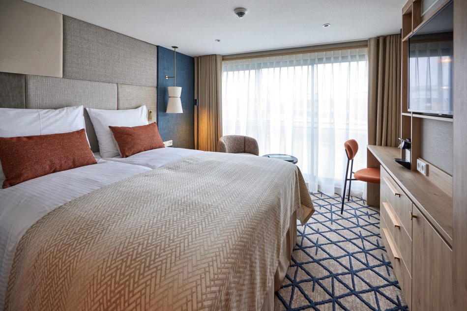 Die MS VIVA TWO ist der zweite Neubau von VIVA Cruises und lädt mit 95 Kabinen bis zu 190 Passagiere zu Wohlfühlmomenten an Bord ein. Auf dem Oberdeck befinden sich acht luxuriöse Suiten, die mit 24 m² Grösse und einem französischen Balkon dazu einladen, die schöne Aussicht zu geniessen. Auf dem Oberdeck sowie auf dem Mitteldeck befinden sich 15 m² grosse 2-Bett-Kabinen, die über einen französischen Balkon verfügen. Auf dem Unterdeck haben die 2-Bett-Kabinen Fenster, die nicht geöffnet werden können. Alle Kabinen sind perfekt ausgestattet mit Flachbildfernseher, inkludierter Mini-Bar, Nespresso®-Maschine, Beauty-Produkten von RITUALS®, Haartrockner, Safe, Klimaanlage, Dusche und WC und lassen keine Wünsche offen.