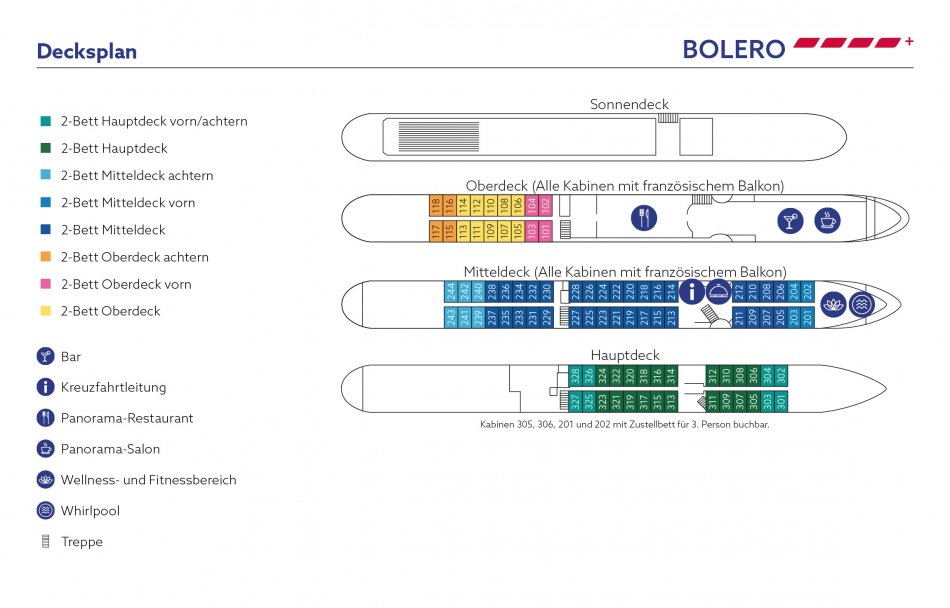 › Preis für 3. Person in 2-Bett-Kabine mit Zustellbett: € 838,-