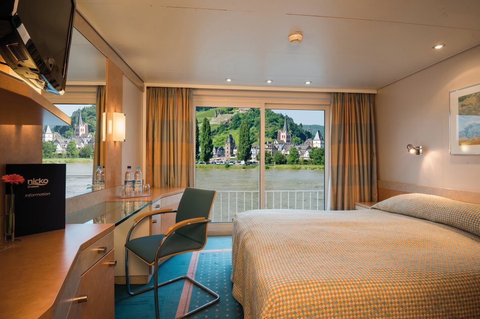 Alle Kabinen wurden rundum erneuert und sind stilvoll und komfortabel eingerichtete Außenkabinen und verfügen über Dusche/WC, Haartrockner, Sat.- TV mit Radio, Telefon, Kühlschrank, Safe und eine individuell regulierbare Klimaanlage/Heizung. Die Kabinen sind ca. 16 m² groß. Die nebeneinanderstehenden Betten können auf Wunsch getrennt gestellt werden. Die Kabinen auf Mittel- und Oberdeck verfügen über bis zum Boden reichende Panoramafenster zum Öffnen mit französischem Balkon. Die Kabinen auf dem Hauptdeck verfügen über große, nicht zu öff nende Bullaugen. Teilweise können 2-Bett-Kabinen auf Wunsch auch mit drei Personen belegt werden.