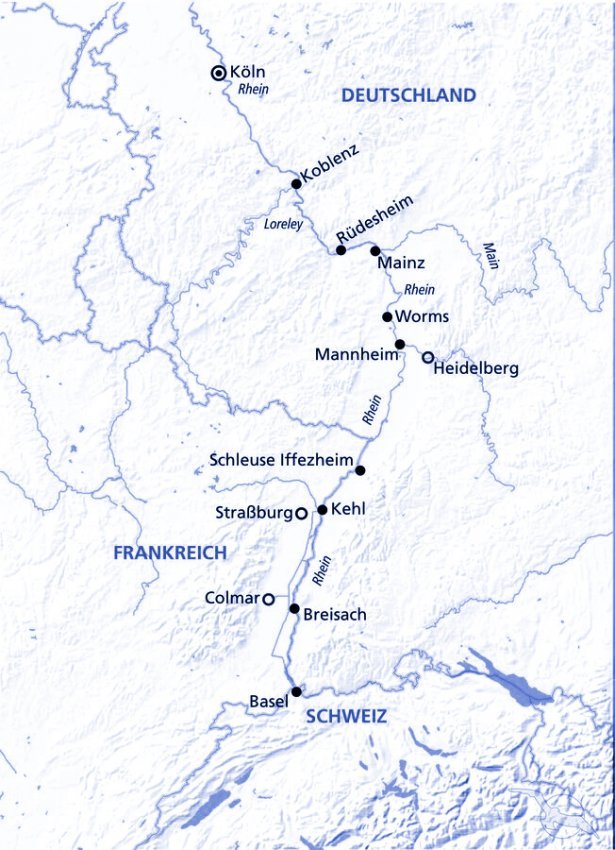 Noch vor dem Frühstück erreichen Sie Worms – die Nibelungenstadt mit jahrtausendealter Geschichte. Der Dom St. Peter, das Lutherdenkmal und der älteste jüdische Friedhof Europas sind Zeugnisse dieser kulturell bedeutsamen Stadt. Am frühen Nachmittag erreichen Sie Mainz. Die rheinland-pfälzische Landeshauptstadt bietet eine gelungene Mischung aus Fachwerkidylle, römischer Geschichte und Mainzer Lebensfreude. Bummeln Sie durch die Altstadt, besuchen Sie den mächtigen Dom oder lassen Sie die Reise bei einem Glas Wein in einem der gemütlichen Lokale an der Rheinpromenade ausklingen.
