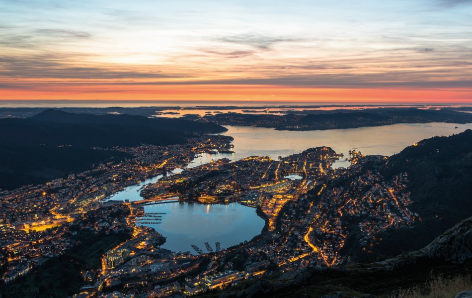 Bergen gilt als eine der malerischsten Städte des Landes. Umgeben von majestätischen Gebirgen, tiefblauen Fjorden und dichten, grünen Wäldern, entfaltet sich hier eine ganz besondere Atmosphäre. Vom Berg Fløyen haben Sie einen einzigartigen Ausblick über die Stadt und die Umgebung.