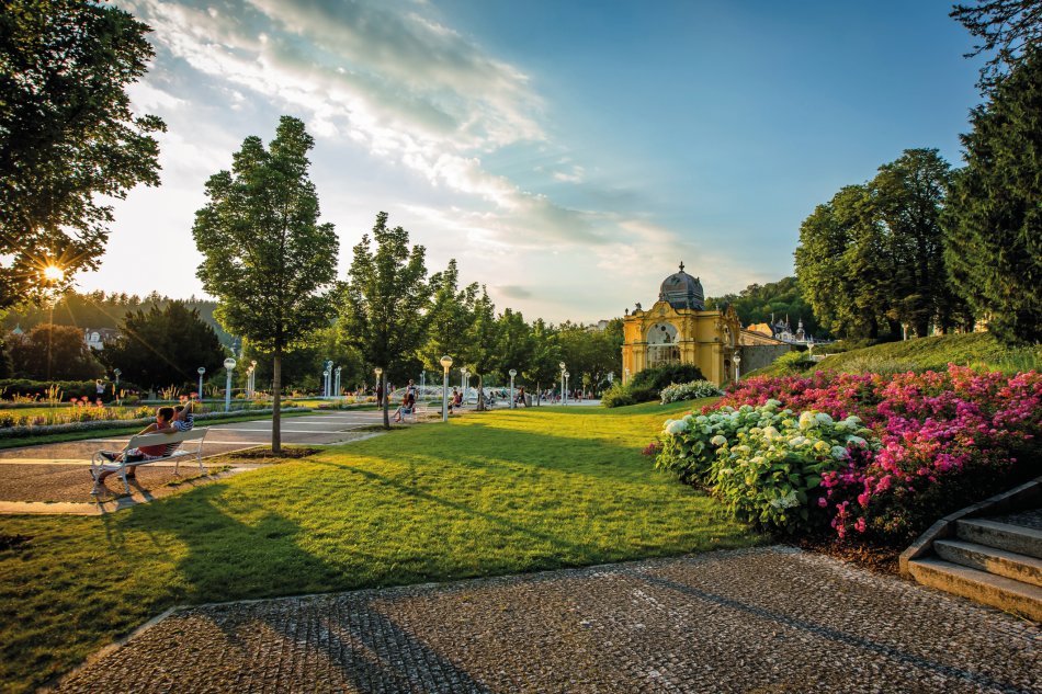 Marienbad gilt als einer der wohl schönsten westböhmischen Kurorte und verzaubert jährlich tausende Kur- und Gesundheitsurlauber mit seinem besonderen Ambiente. Rund 40 Heilquellen, die reine Luft, prächtige Bauten und wunderschöne Parkanlagen prägen das Bild des mondänen Kurorts. Weltweit ist Marienbad bekannt für die heilende Wirkung seiner Quellen (Säuerlinge), deren kaltes Heilwasser besonders reich an Kohlensäure und Mineralsalzen ist. Bereits im 17. Jahrhundert wussten die Menschen der näheren Umgebung um die heilende Wirkung der Bodenschätze des damaligen Sumpfgebiets. Nach der Erforschung deren Heilkraft wurde aus der ehem aligen Sumpfl andschaft nach und nach ein ansehnlicher Kurort mit herrlichen Kuranlagen und Bauten sowie einem gepfl egten Kurpark. Nach einer grundlegenden Sanierung Ende des 20. Jahrhunderts erstrahlt Marienbad heute in neuem Glanz. Bis heute strömen jährlich tausende Besucher aus aller Welt in das Kurparadies Tschechiens.