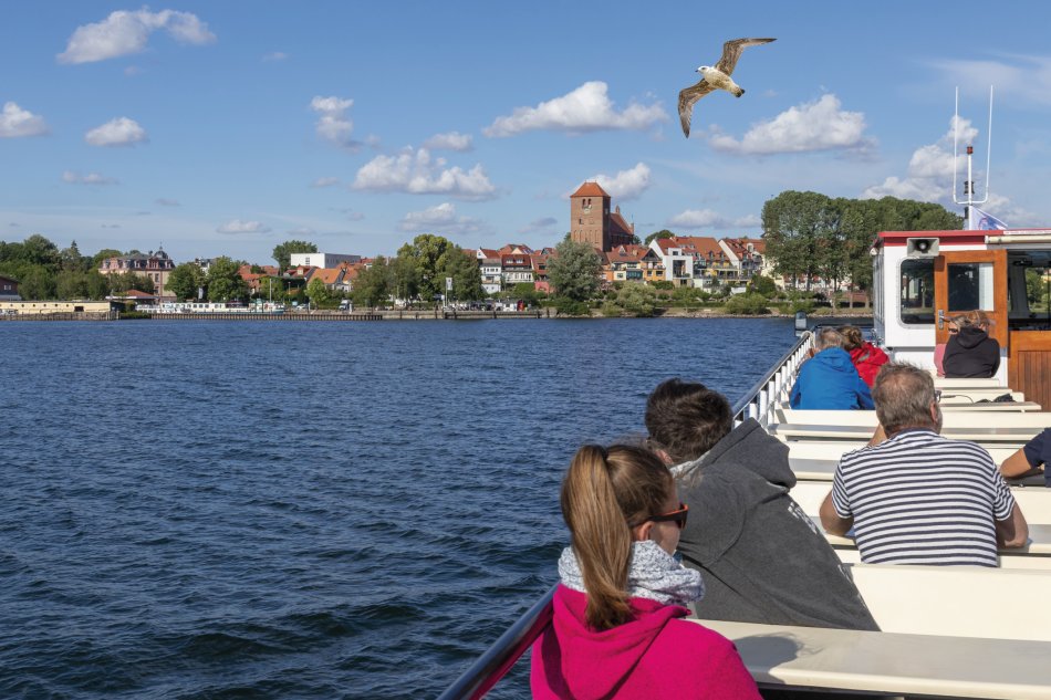 Das malerische Städtchen selbst lädt zum entspannten Bummel durch die liebevoll restaurierte Altstadt mit schmalen Gässchen, beeindruckenden Baudenkmälern und Plastiken namhafter Künstler ein. Der Stadthafen von Waren (Müritz) und die Uferpromenade versprühen eine maritime Atmosphäre. Besonders am Abend herrscht hier ein reges Treiben. Die unzähligen Kneipen und Restaurants gelten als beliebter Treff punkt für Einheimische und Touristen.