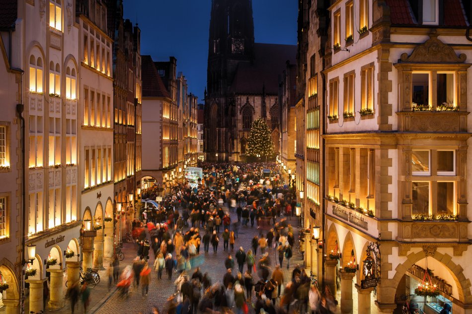 Erleben Sie Münster in stimmungsvoller Adventsatmosphäre! Bei einem rund 1,5-stündigen Rundgang entdecken Sie die festlich erleuchtete Altstadt mit ihren historischen Schätzen – vom Dom und Prinzipalmarkt bis zum Rathaus des Westfälischen Friedens. Dabei erfahren Sie Interessantes über das Leben in der lebendigen Studenten- und Fahrradstadt. Umgeben vom Duft nach Gewürzen und Tannengrün genießen Sie eine frisch gebackene Weihnachtswaffel. Im Anschluss bleibt Zeit für einen gemütlichen Bummel über die liebevoll gestalteten Weihnachtsmärkte.