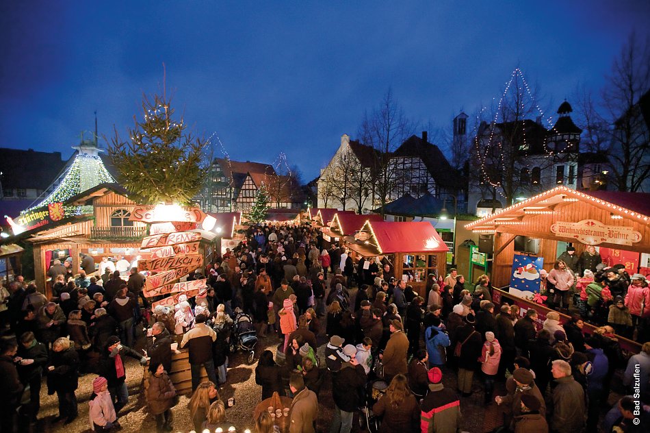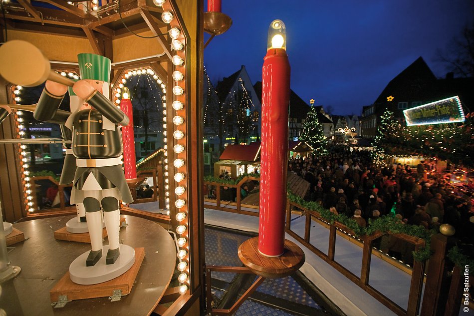 Diese Reise führt Sie als erstes nach Höxter-Ovenhausen. Stärken Sie sich vor Ihrem Weihnachtsmarktbesuch mit einem deftig leckeren Grünkohlessen „Zum Sattessen“ in der rustikalen und urgemütlichen Bauernstube der „Schenken Küche“. Anschließend fahren Sie zum Weihnachtsmarkt nach Bad Salzuflen. Im Herzen der historischen Altstadt zwischen Schliepsteiner Tor, Lange Straße, Steege und Salzhof, finden Sie ca. 65 Holzhäuschen mit weihnachtlichen Angeboten. Auf dem Salzhof ist der Mittelpunkt des Weihnachtstraumes die 12m hohe Weihnachtspyramide mit dem Winzerglühweinausschank.